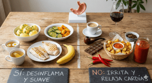 En Resumen: Nutrición y Mecánica para tu Estómago La «lista negra» clásica (café, alcohol, picante) es real, pero eliminarla no sirve de nada si comes